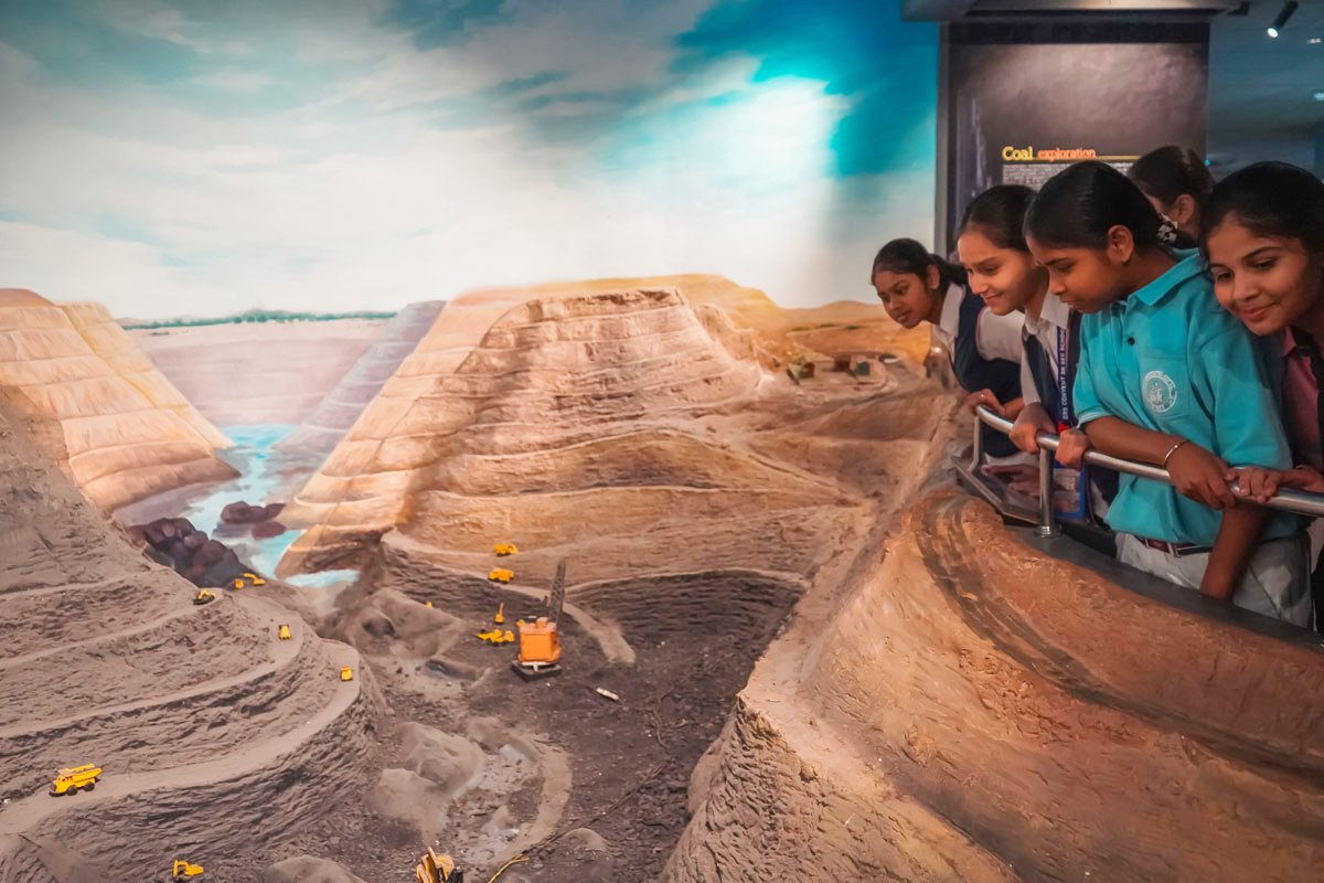 Step into the depths of a coal mine with the Underground Coal Mining Experience in the Coal Gallery, offering a realistic glimpse into miners’ daily work. Visitors can take a thrilling descent 500 meters underground with the life lift simulator, recreating the experience of entering a real mine. The exhibit showcases a wide range of mining machinery and equipment used routinely in underground operations, including conveyor belts that efficiently transport coal from the mining face to the surface, demonstrating how technology streamlines the extraction process. A highlight of the exhibit is the Mahabir rescue capsule, famously used in the Raniganj coal mine rescue, illustrating the innovation and safety measures essential in mining. This immersive experience combines simulation, hands-on exploration, and historical artifacts to give visitors an educational, memorable, and engaging journey into the heart of coal mining.