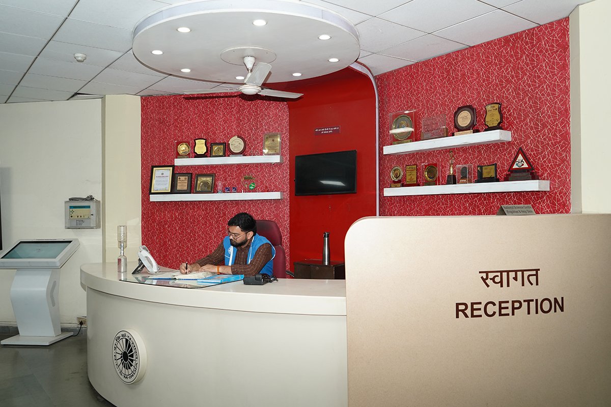 A dedicated helpdesk counter facilitates visitors by providing information on ongoing activities, exhibitions, and programmes, along with guidance about various facilities of the Centre. Designed to enhance visitor orientation and engagement, the reception area acts as an informative hub, ensuring a smooth and enriching start to the museum experience