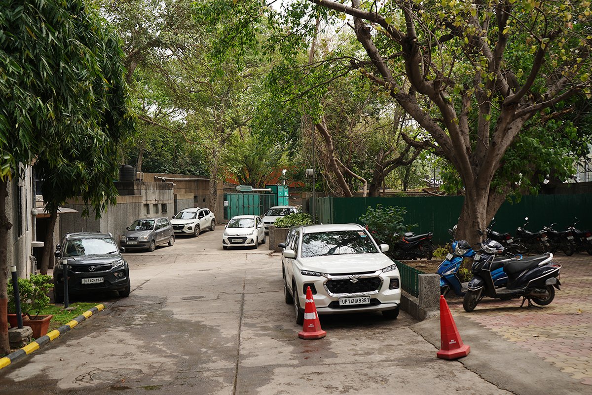 The Centre provides a safe parking facility during working hours for its visitors and for those attending programmes in the auditorium or conference halls. The parking area is approximately 800 sq. metres, which can comfortably accommodate around 30 cars and 30 two-wheelers.
